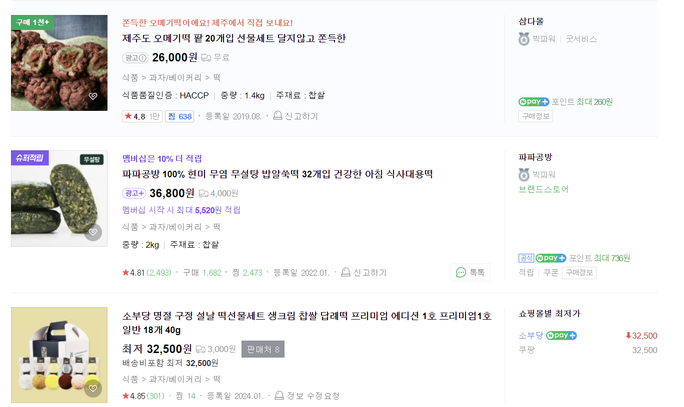 3) 떡 선물세트 네이버 쇼핑 (https://search.shopping.naver.com/search/all?where=all&frm=NVSCTAB&query=%EB%96%A1%EC%84%A0%EB%AC%BC%EC%84%B8%ED%8A%B8)