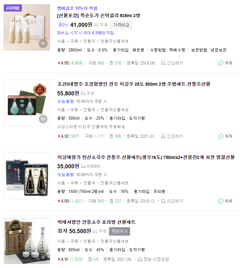 1)전통주 선물세트 (https://search.shopping.naver.com)