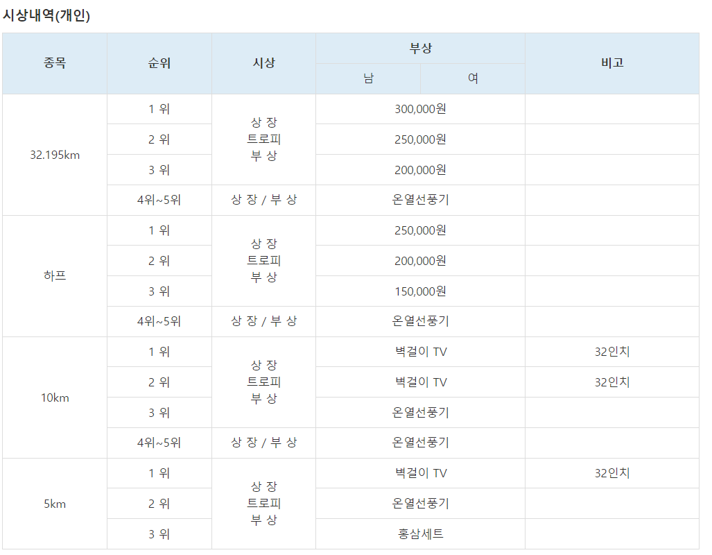 풀코스 (32.195km) : 여의도 이벤트광장에서 출발하여 한강을 따라 왕복하는 코스